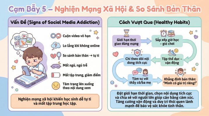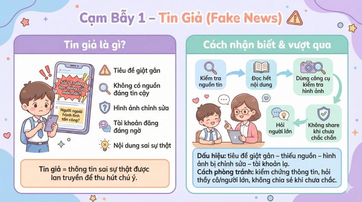 Bộ ảnh tuyên truyền “5 Cạm bẫy trên mạng xã hội mà học sinh cần tránh xa” được làm bằng Gemini 11 Th12 Có thể bạn quan tâm: Tạo video tua nhanh decor căn phòng đón tết Bính Ngọ 2026 Th1 8, 2026 Hướng dẫn tạo Video từ ảnh sách giáo khoa – chân thật và giữ nguyên các yếu tố Th12 12, 2025 Hướng dẫn Chuyển ảnh một hoạt động từ SGK thành video có lời thoại tiếng Việt Th12 10, 2025