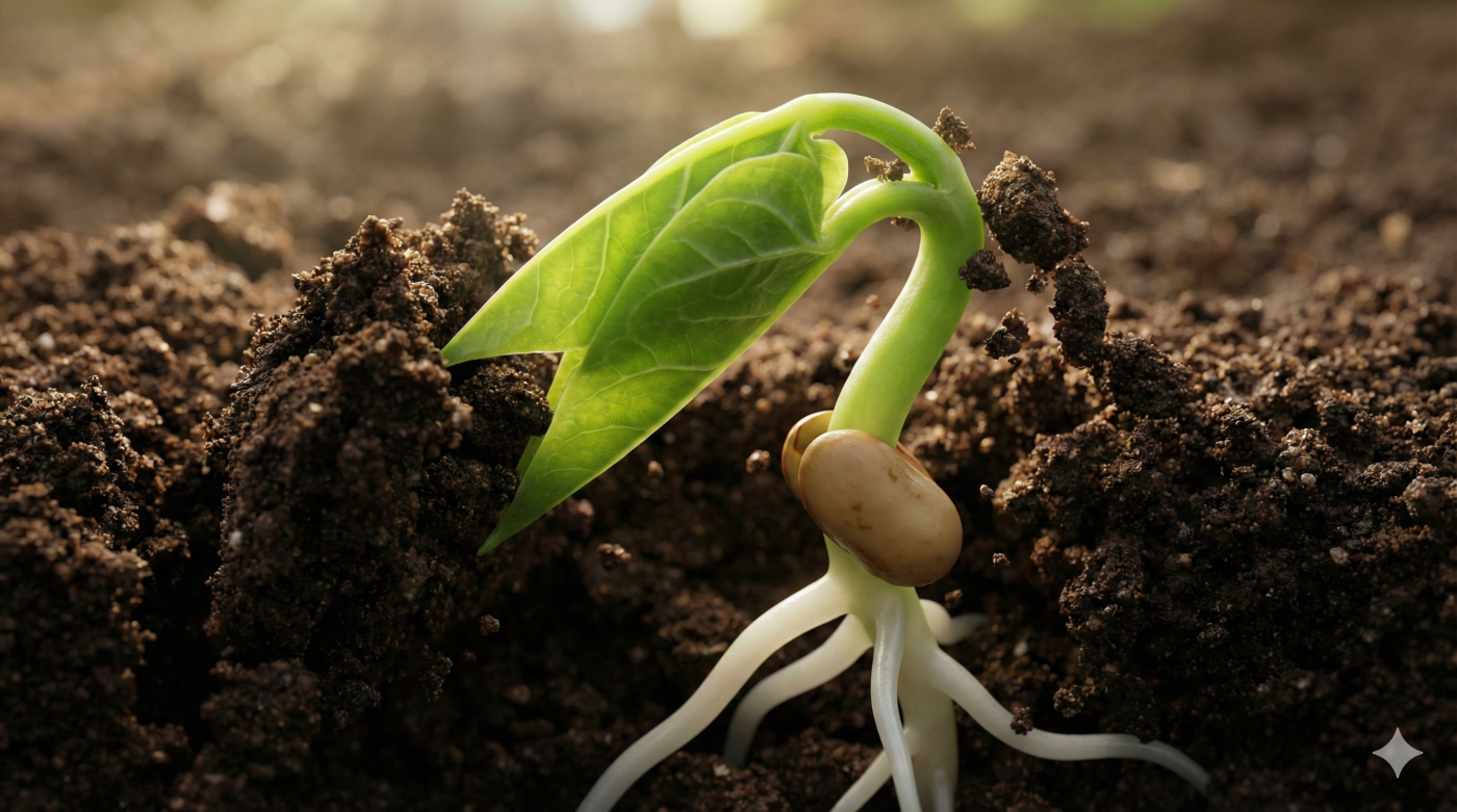 “Một buổi sáng nọ, tôi nghe một tiếng ‘tách’ khe khẽ – vỏ hạt nứt ra, để lộ một chiếc rễ mầm trắng muốt khẽ khàng vươn ra và cắm xuống lòng đất.”